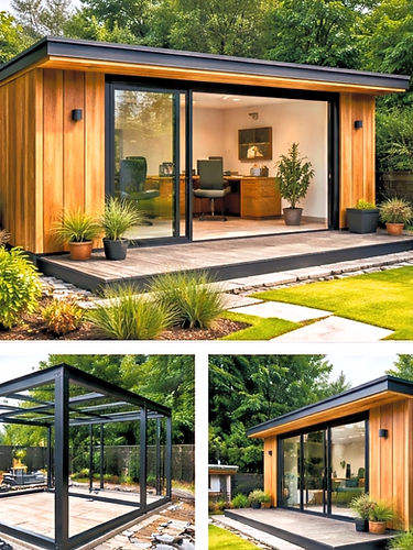 MKMetals Ltd designed, fabricated, and installed a bespoke steel-framed garden room to be used as a private home office. The structure combines a precision-engineered steel framework with natural timber cladding, creating a contemporary, durable workspace that sits comfortably within the surrounding garden setting.